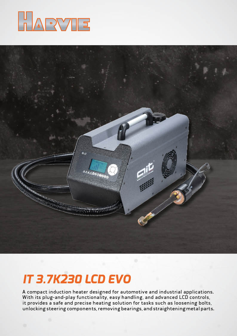 A compact induction heater designed for automotive and industrial applications. With its plug-and-play functionality, easy handling, and advanced LCD controls, it provides a safe and precise heating solution for tasks such as loosening bolts, unlocking steering components, removing bearings, and straightening metal parts.